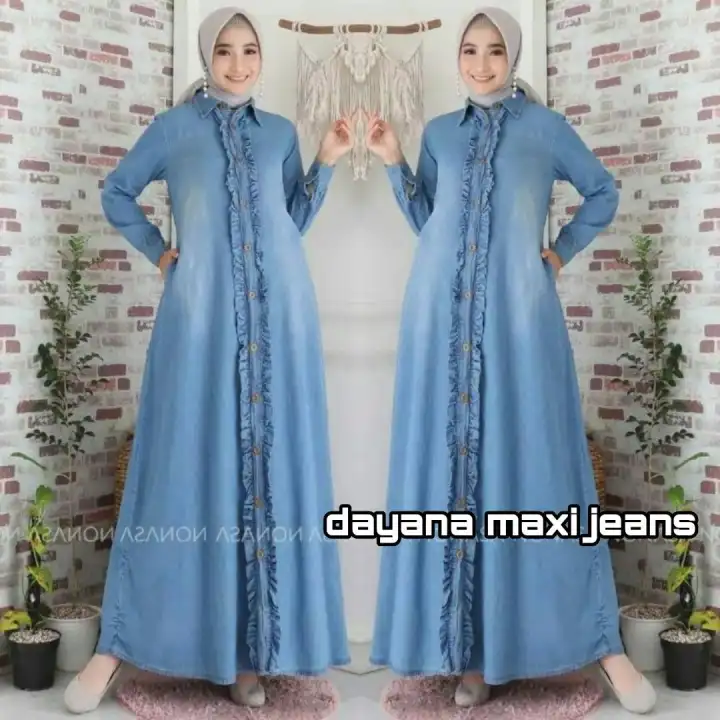 Gamis Jeans Terbaru 2021 Hanum Dress Jeans Maxi Dress Jeans Dayana Maxi Jeans Fashion Trendy Terbaru 2021 Gamis Levis Gamis Jeans Lazada Indonesia